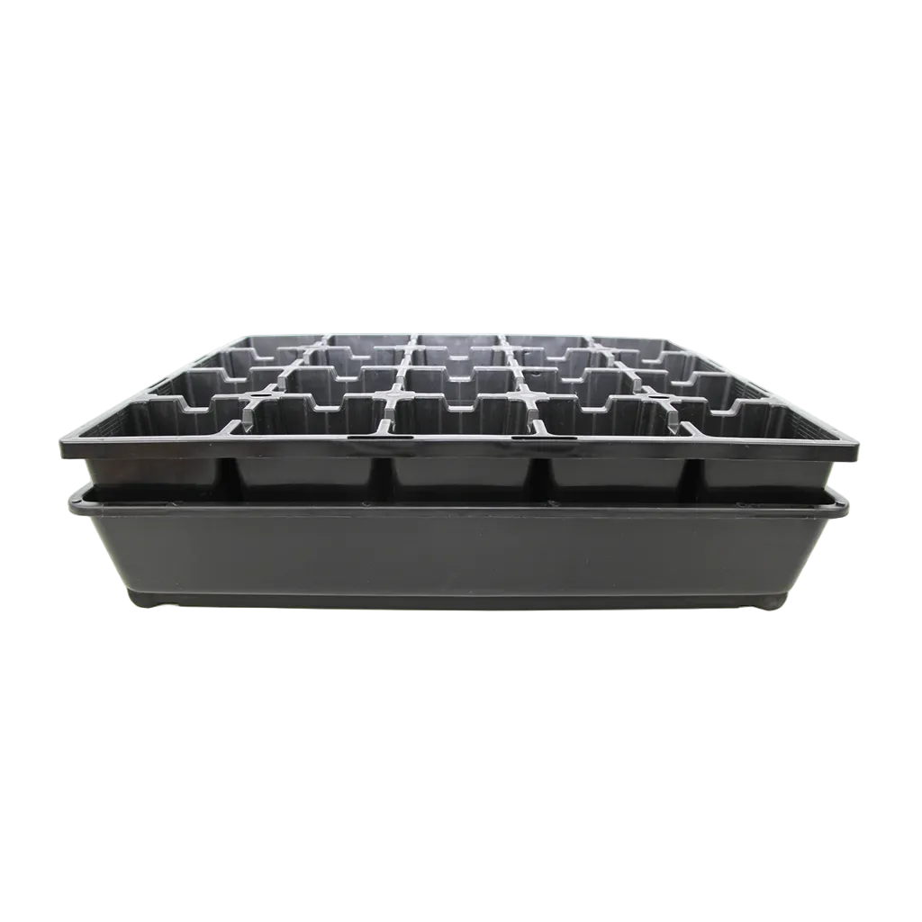 Designed to be part of a modular growing system, this 20-cell unit is perfectly dimensioned to fit inside the budget perforated and non-perforated bottom trays. When paired with a solid bottom tray, it facilitates efficient bottom-watering, ensuring that moisture reaches the roots directly while preventing soil compaction and keeping the young stems dry.
