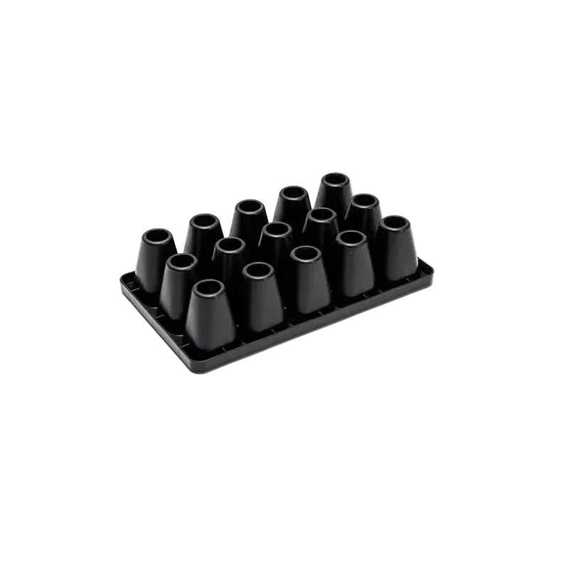 Injection-moulded from heavy-duty, UV-stabilised recyclable polypropylene, the CD15 is built to last for many years, providing a rigid and dimensionally stable alternative to flimsy, single-use plastics. When paired with the Charles Dowding/Huw Richards Base Tray, the cells facilitate air pruning, which prevents roots from circling and encourages a dense, fibrous root system. This ensures that seedlings are well-established and ready for a seamless transition into the garden.