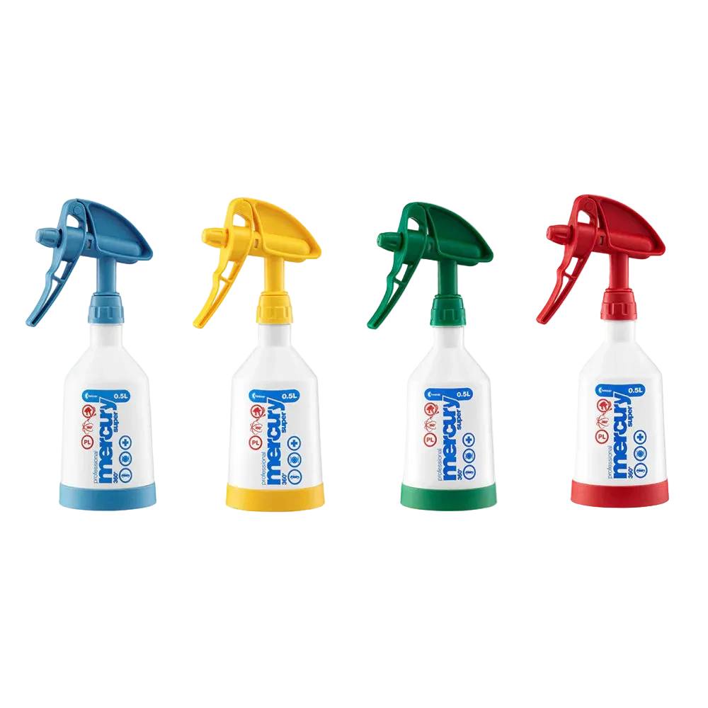 The standout feature of this range is the Super Double-Action trigger. Unlike standard bottles that only spray when the lever is squeezed, the Mercury system delivers a constant spray on both the “pull” and the “release”. This innovative mechanism effectively doubles the output per stroke, significantly increasing efficiency and reducing hand fatigue during large-scale applications.