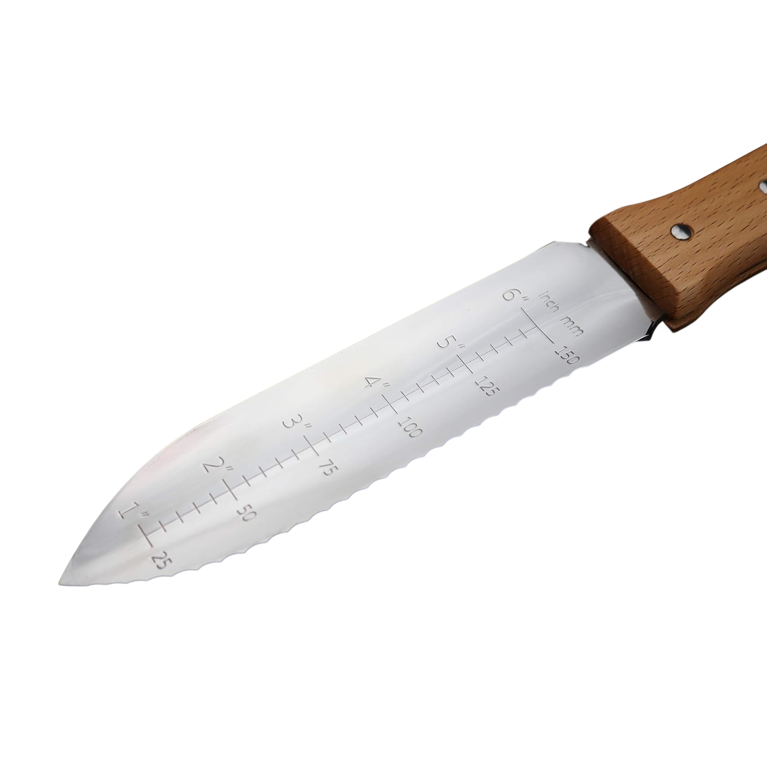 - inch markings on the Japanese stainless steel blade will ensure your plants and bulbs are planted at just the right depth